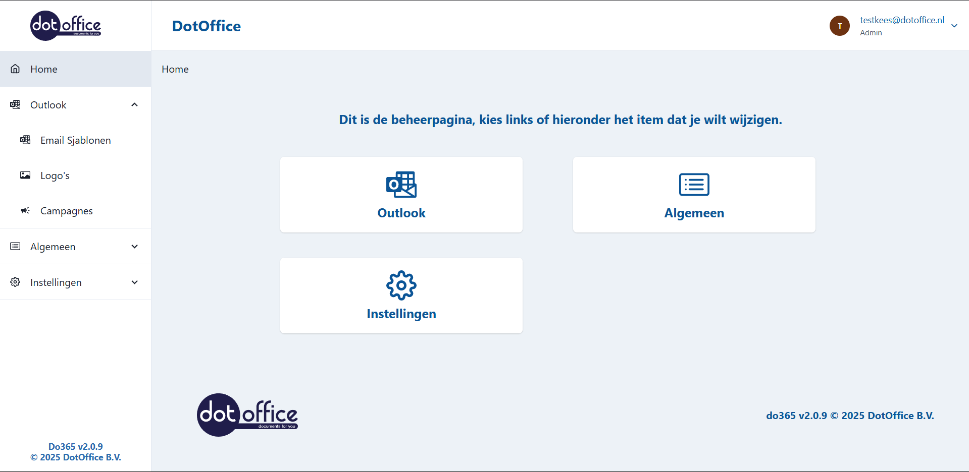 Voor de admin omgeving heb je administrator rechten nodig. Neem contact op met DotOffice om te zorgen dat u de juiste rechten krijgt.