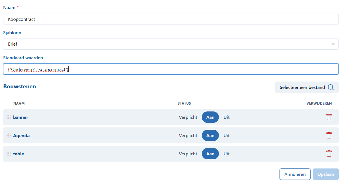 - de bouwstenen die moeten worden gebruikt/kiesbaar/verplicht moeten zijn