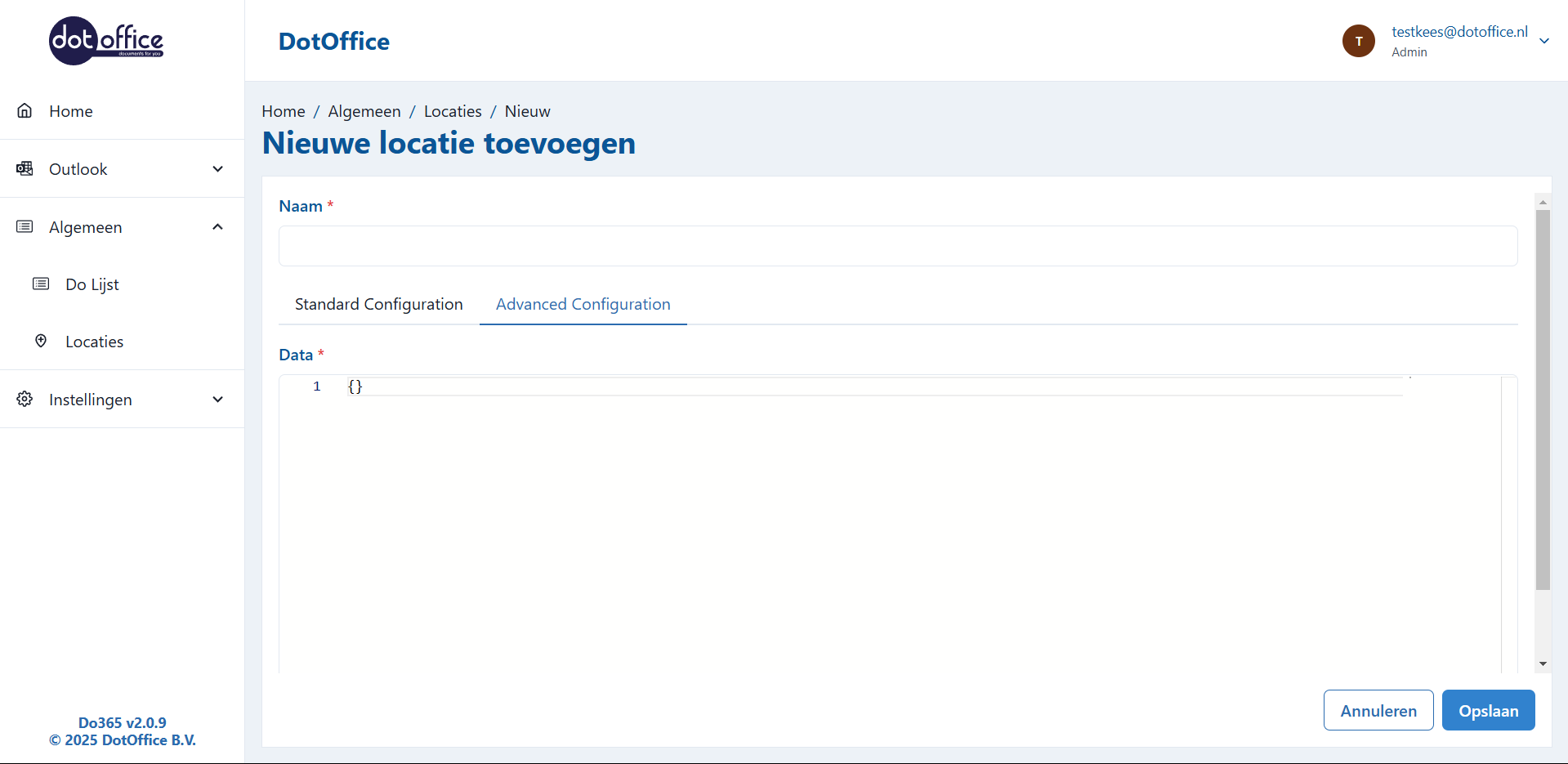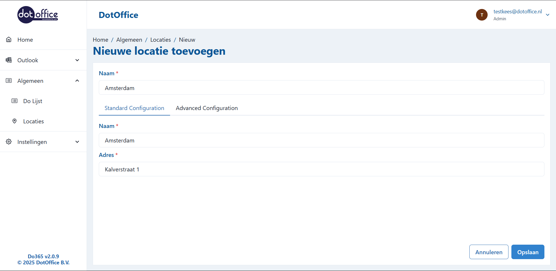 Om nieuwe locaties aan te maken of bestaande te bewerken, gaat u naar de 'Locaties' pagina onder 'Algemeen':