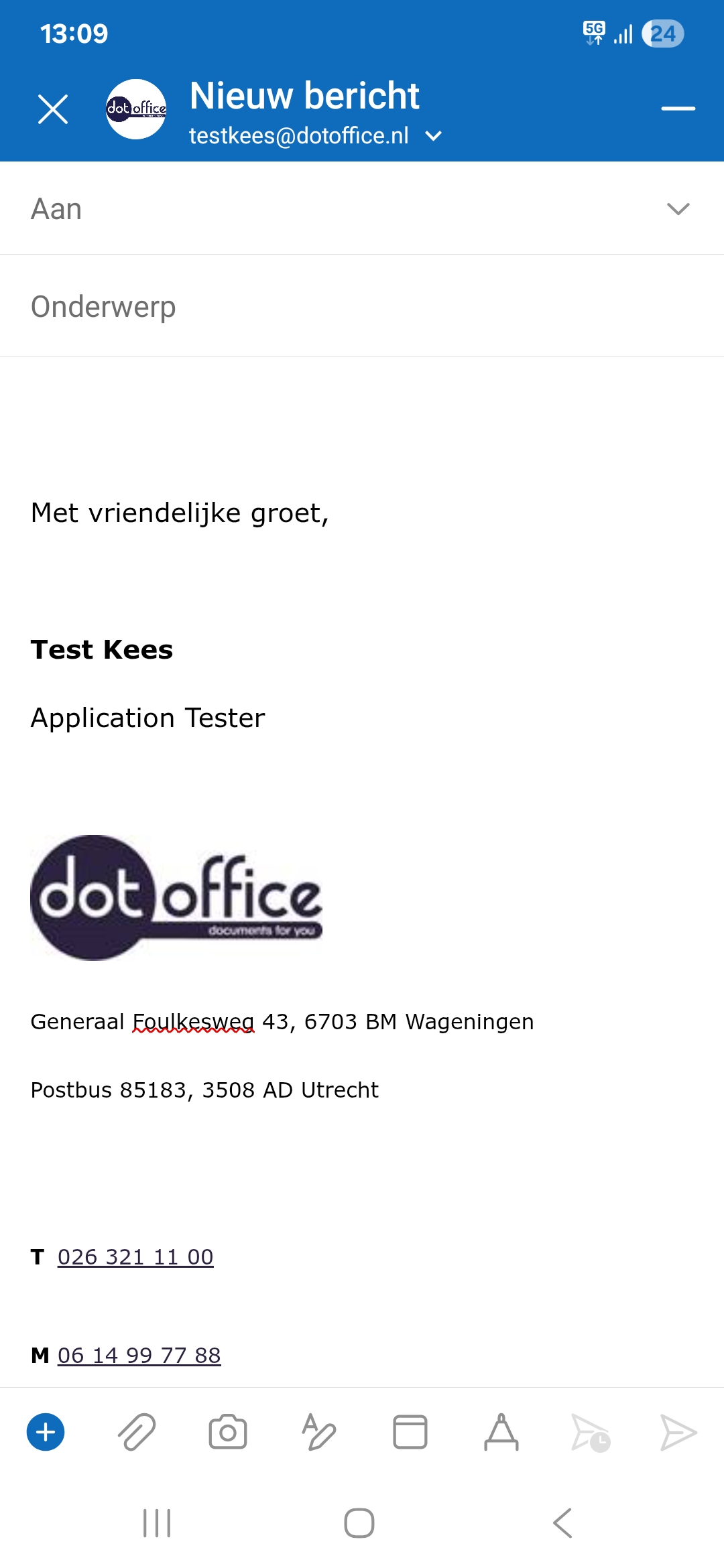 do365Mail biedt ondersteuning voor Outlook Mobile indien dit geactiveerd is in uw licentie. Door een standaard handtekening in te stellen in Outlook Desktop of Outlook Online, zal deze ook worden ingevoegd in Outlook Mobile mails.