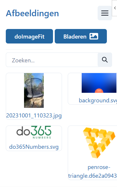 De afbeeldingen die er standaard instaan zijn toegevoegd door DotOffice. Mocht u extra nodig hebben kunt u contact opnemen met DotOffice.