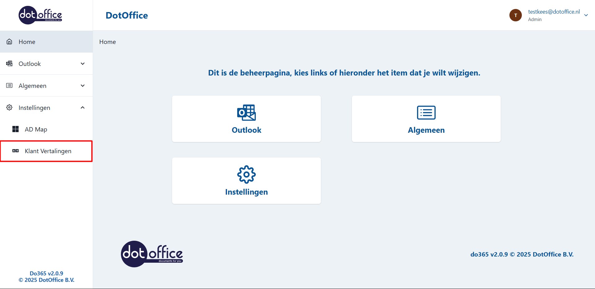 Admin - Instellingen