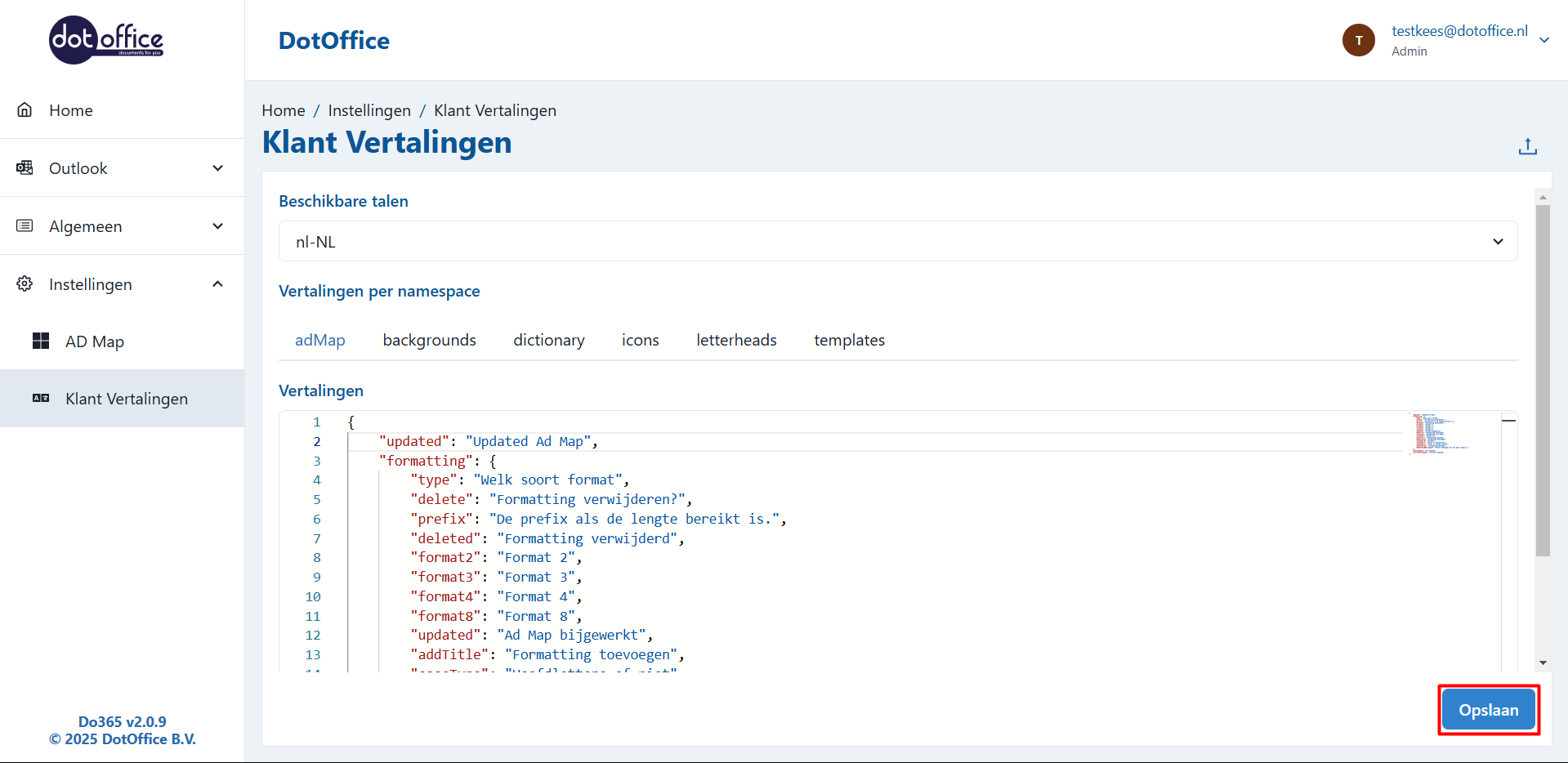 DotOffice zal voor u de juiste namespaces beschikbaar stellen, zodat u goed kan vertalen. Om te vertalen kiest u de taal waar u het in wilt vertalen: