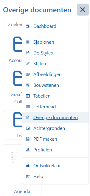 Om vervolgens een overig document in te voegen klikt u op het item wat u wilt gebruiken: