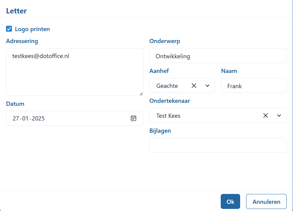 Kies uw sjabloon door op de knop te klikken. Er zal vervolgens een dialoog openen waar u de benodigde gegevens kunt invullen.